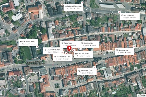 Byt vyniká svou skvělou lokalitou, jež umožňuje pohodlný přístup k občanské vybavenosti. V blízkosti se nachází obchody, restaurace a kulturní vyžití, které obohatí každodenní život. Na své si přijdou jak milovníci městského ruchu, tak ti, kteří preferují klidné chvíle strávené na zahrádce ve vnitrobloku.